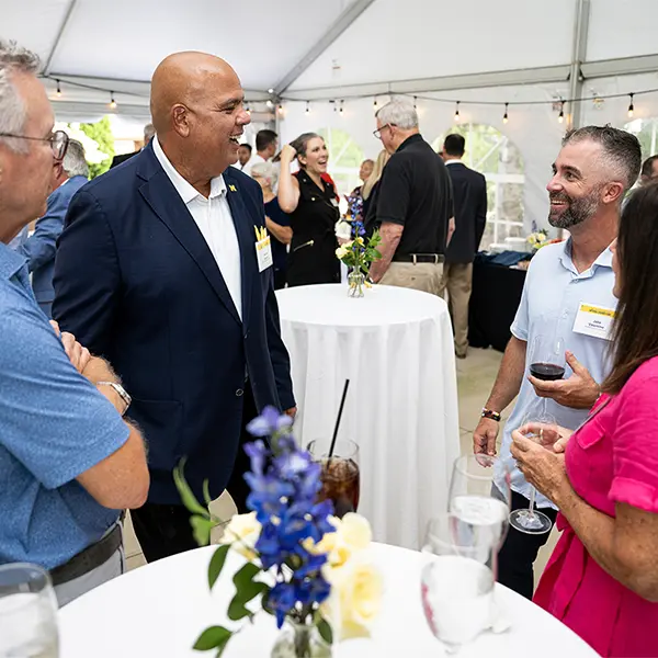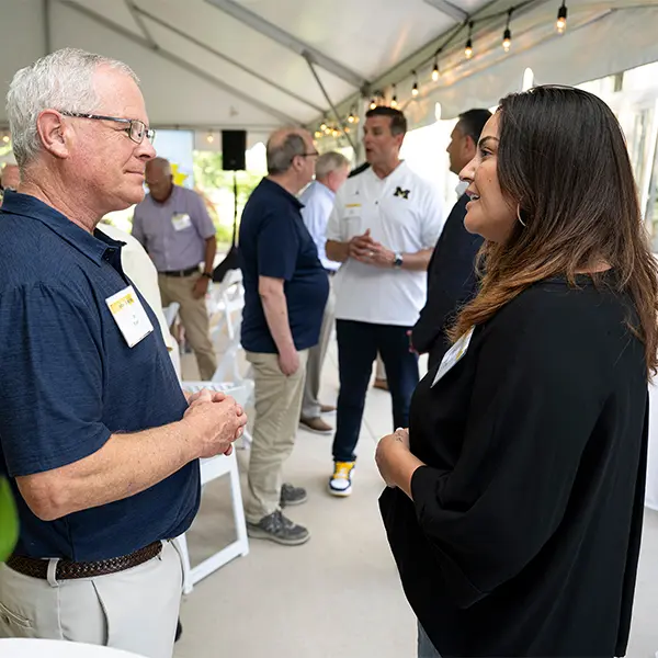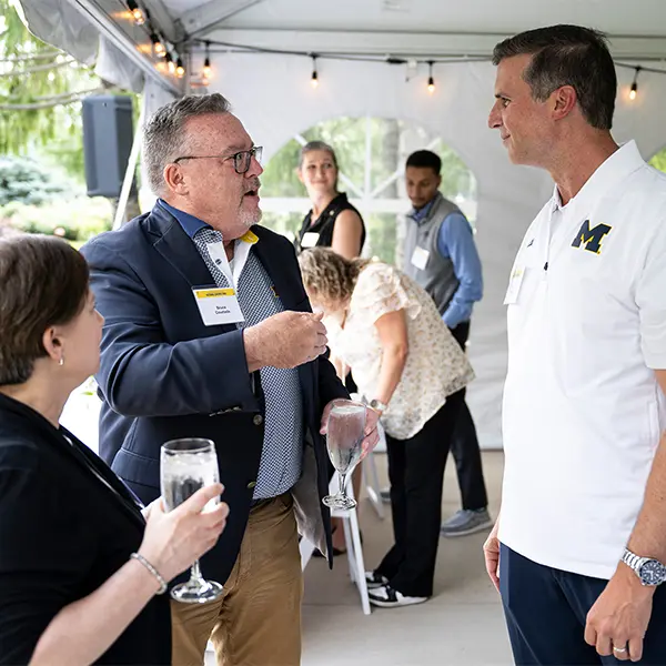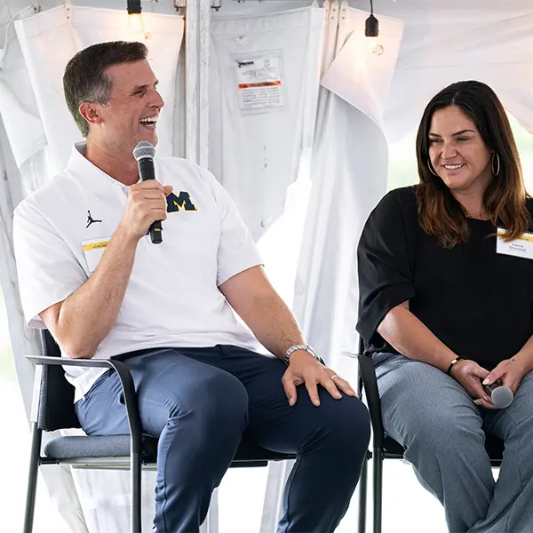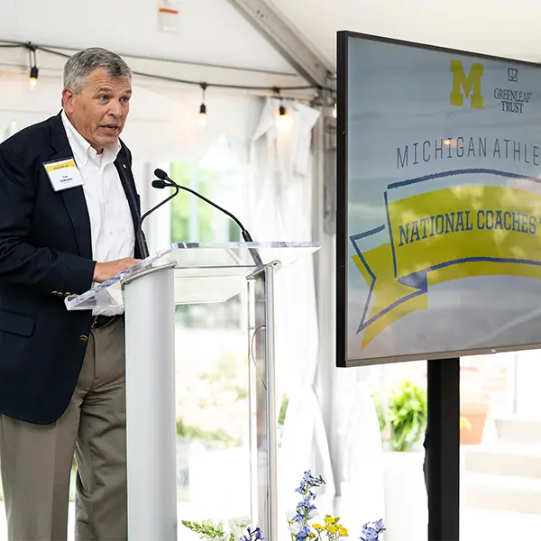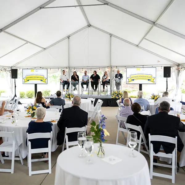 In partnership with Greenleaf Trust, Michigan Athletics hosted the Grand Rapids leg of its coaches tour at the beautiful Cascade Hills Country Club on August 13. Warde Manuel, Donald R. Shepherd Director of Athletics, welcomed everyone by recounting the Michigan's numerous successes in competition and in the classroom this past year. Ed Kengerski moderated a coaching staff panel with Cassie Churnside (water polo head coach), Maile'ana Kanewa-Hermelyn (women's gymnastics head coach), Sean Magee (football general manager), Jake Valentine (baseball assistant head coach) and Erin Virtue (volleyball head coach).