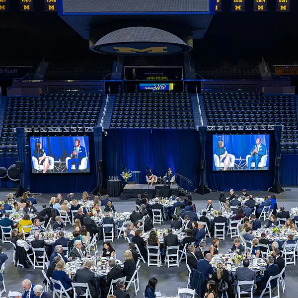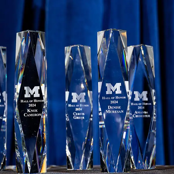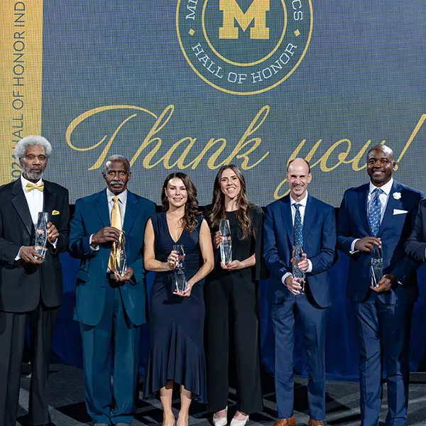 On Nov. 1, Michigan Athletics inducted the Hall of Honor Class of 2024: Knox Cameron (men's soccer); Amanda Chidester (softball); Dan Goldberg (men's tennis); Curtis Greer (football); Ken Hayward (baseball); Denise Muresan (women's tennis); and Calvin O'Neal (football). Michigan alumna Dana Jacobson served as the evening's host.