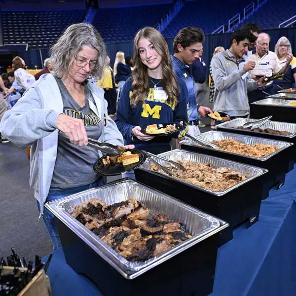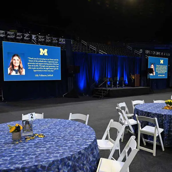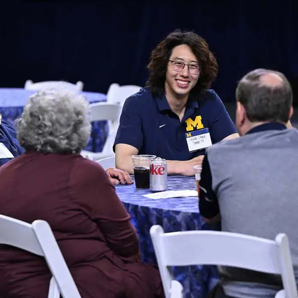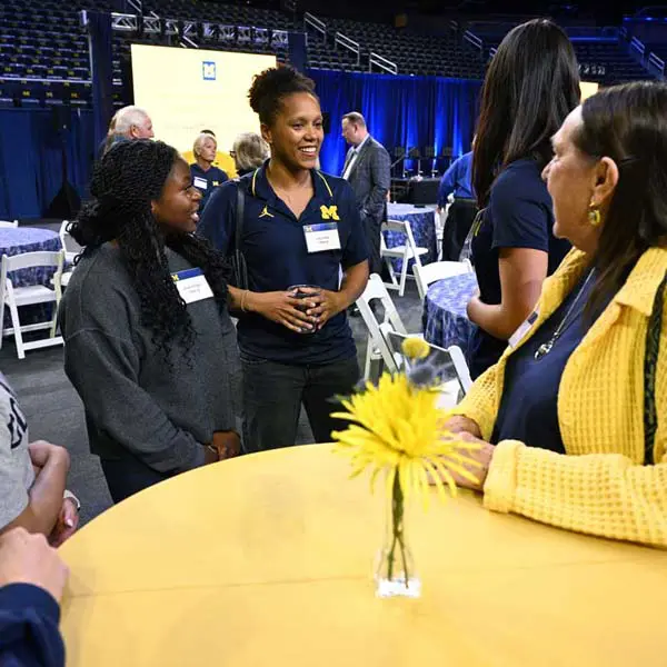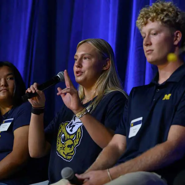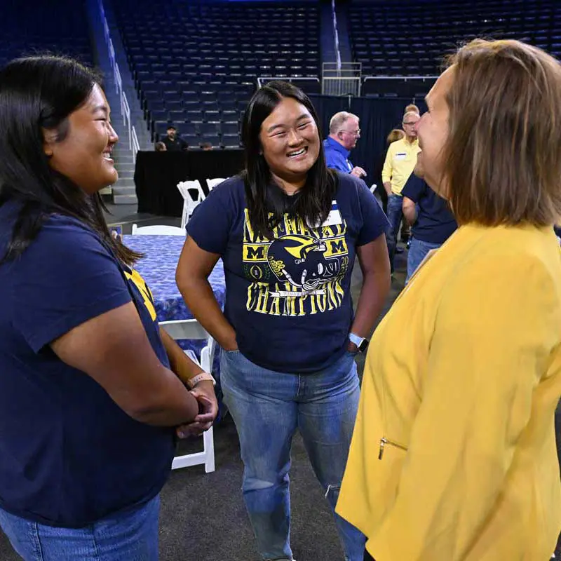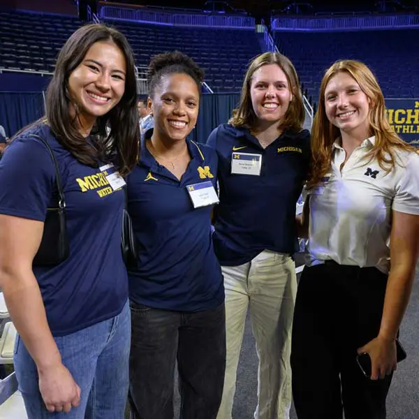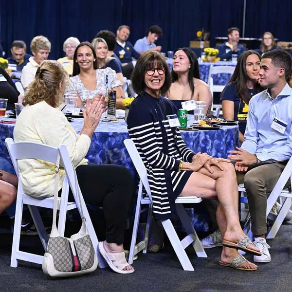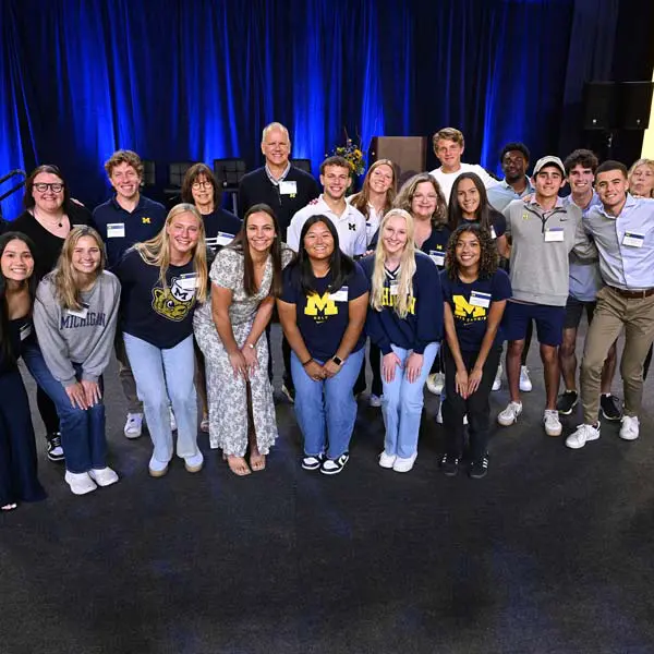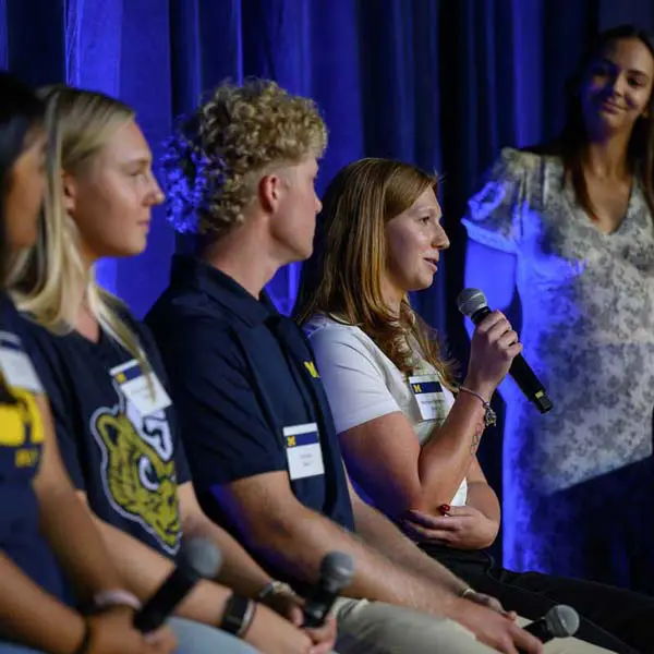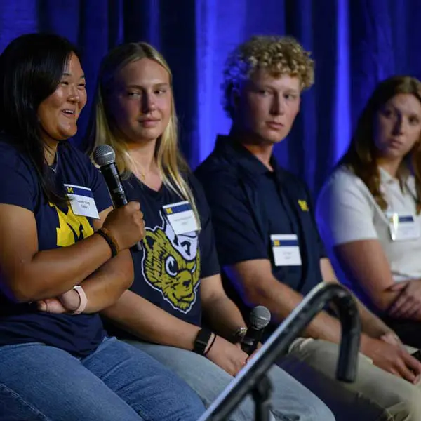 Athletic Development hosted its annual scholarship event but changed things up with an evening event prior to the Michigan-Wisconsin football game. Student-athletes and scholarship donors were able to share time together before being treated to a panel discussion moderated by volleyball Academic All-American Allison Jacobs with Lauren Sung (women's golf), Emma Gustaffson (water polo), Kurt Barr (baseball), Stephanie Balduccini (swimming and diving).
